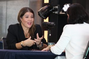 A diretora de Gestão de Pessoas da Fundação Cecierj, Viviane Villar, durante gravação de podcast em Brasília: foco na saúde mental e nas novas diretrizes da NR1. Foto: Divulgação