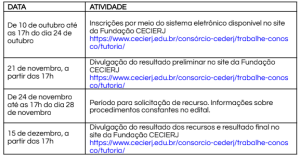 Acompanhe as convocações pelas listagens de cadastro de reserva com edital vigente disponível em https://www.cecierj.edu.br/consorcio-cederj/trabalhe-conosco/tutoria/cadastro-de-reservas/
